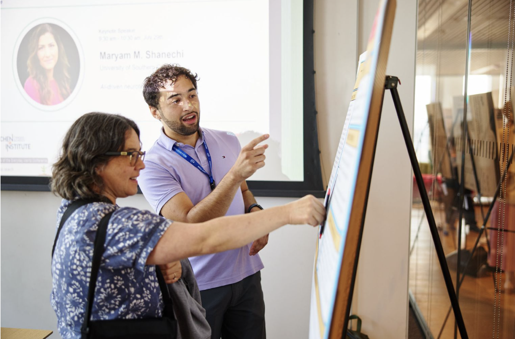 Anthony Gonez (RA) and Dr. Kathy Xie (Postdoc) [with Brenna Hagan (PhD Candidate) observing] presenting at BU’s Neuroscience of the Everyday World Conference ’25.