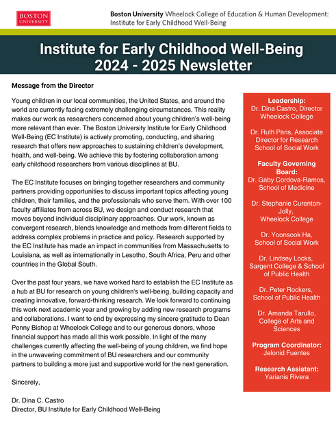 As we all begin this fall semester, the Institute for Early Childhood Well-Being reflects on its successful 2024-2025 academic year in this newsletter.