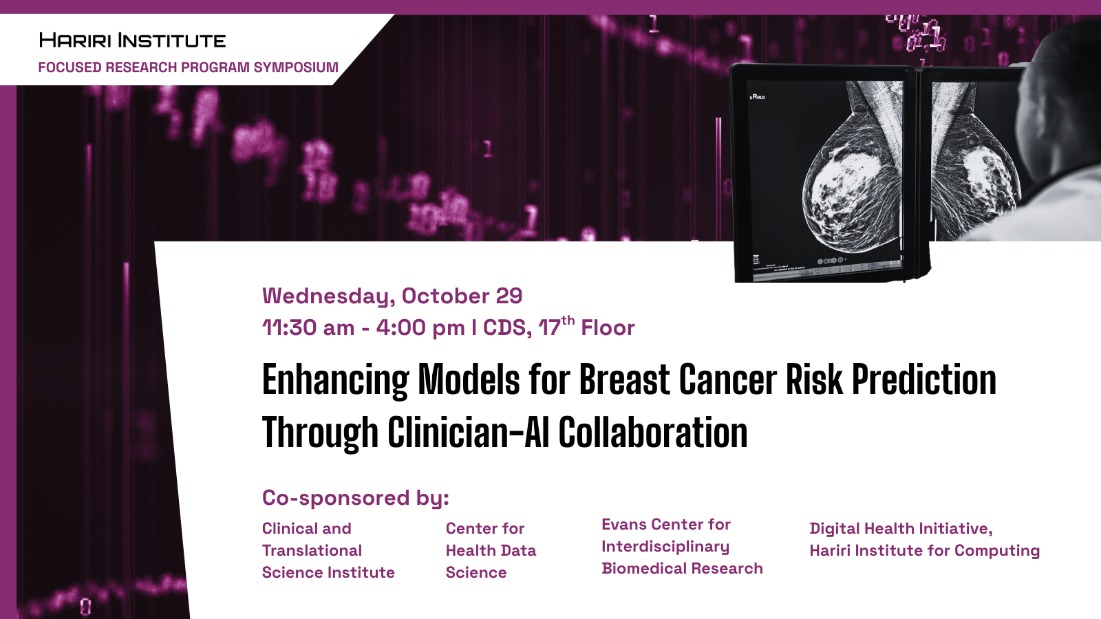 This event is part of Hariri Institute’s Focused Research Programs (FRPs) and is co-sponsored by the Digital Health Initiative at the Hariri Institute for Computing, theSchool of Public Center for Health Data Science, the Clinical and Translational Science Institute, and theEvans Center for Interdisciplinary Biomedical Research.
