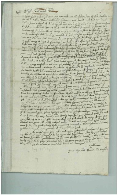 Wee need not give you an amount in all, Hiruless of the Avails wee have had this summer with the Indians, wee doubt not but you have taken some notise of their pride and misolenteis, and can in some measuers testifie with and for us that wee have extended great patience and tenderness towards them; beeing very unwilling efforts to shed their blood on to in broyle the Country, might it bee avoyded without dishon to god and our Nation, and hazard to our people; if hath pleased god to Excersise us with many changes of providence respecting this affairs, Sometimes the Contest truth run high between us and Phillip and then by our treaty at Tanton; wee did hope and expect the controversy had bine of an issue between us, and wee should redly have returned to our former friendship with him had hee bine faithfull to that agreement, and firmly in his carrages towards us; After wards refeusde are so at; for petiraelavityes misfiets of our well frequent for Song of young; Surmont but by the good providence of god that seems to Scatter and disapeare; and it returns to affair First [and as wee continue this proper Center:] Philip hath in many respects as wee concieve violated that agreement, in his not bringing in their arms according to articles; in his Endeavors by complaints and falsehoods to create trouble between us and our neighbor Collony, refurfring EverSince our treaty at Tanton to come to us, Altho wee have Several times sent to him, to nor other eynd but that jealousies might bee removed and are our peace Configured, And faith now lately Entertained and diverse of the Suttonat Indians that were and are our profesfed Enimise, and will attempt of nor fenders of peace; and is now a gathering a great Contourse of Indians from many parts, and is very high inSolent, and provoating in his speeches and carrages towards us: Our countell hath bine seriouse in the consideration of the matter as a thing of great import-ance, and doe conclude that god Calls us by favor to endure their reducement, yet in as much as all the English Collonys by the uncertaiyne events of warr may bee here in concerned the more remotely then our solvs; wee hold our solus obliged to give you an amount how matters stand, and are very desierouso to receive the benefit of your good advice respecting the premises; and if you shall consoive your Solvs engaged with us against a common enemy, as you have formerly very frendly and freely expressed your Solvs, it shall bee well accepted of us as neighly fridnes that wee shall chierfully repay if gods providence and your call invite use there unto, and that wee may have your advice more fully, and particularly both concerning our call to the Expedition, and most prudent way of management of it, wee have sent