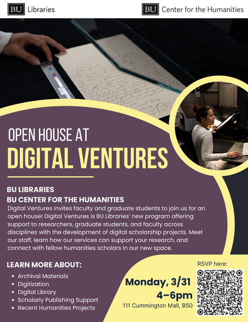 Fallou Ngom and Daivi Rodima-Taylor presented at the Boston University Digital Ventures Open House on African Ajami projects. The event took place on March 31, 2025, and brought together researchers, students, and various staff members of the Boston University Libraries to discuss their work around digital scholarship and archival collections. The gathering provided a dynamic space for participants to share insights, highlight ongoing projects, and explore innovative approaches to preserving and making archival materials more accessible. The BU Libraries’ Digital Ventures provides digitization and digital scholarship services that support the global reach of scholarship produced at BU, and provides support with archival resources, digitization, and digital project consultation.