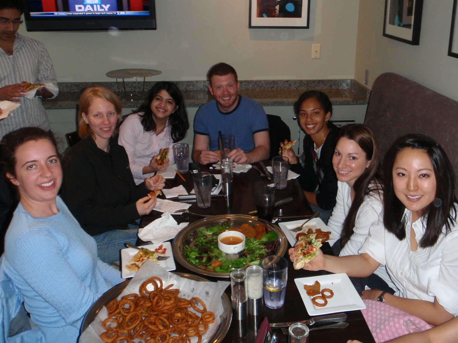 | Students getting a bite to eat at a restaurant across the street from the School of Management |