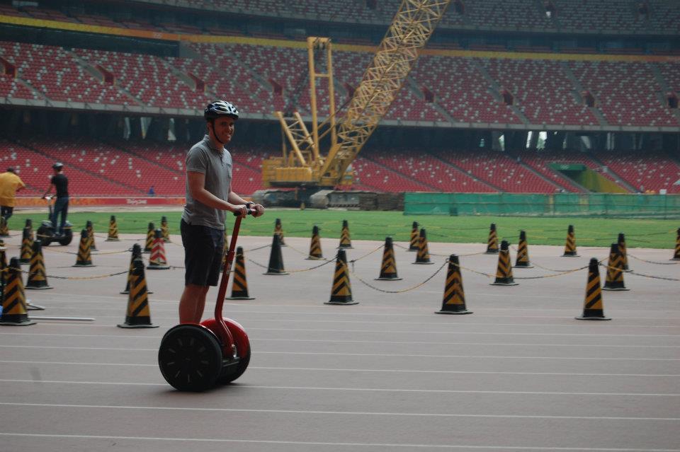 | Mark Duthe rides a Segway at Olympic Stadium in Beijing, China |