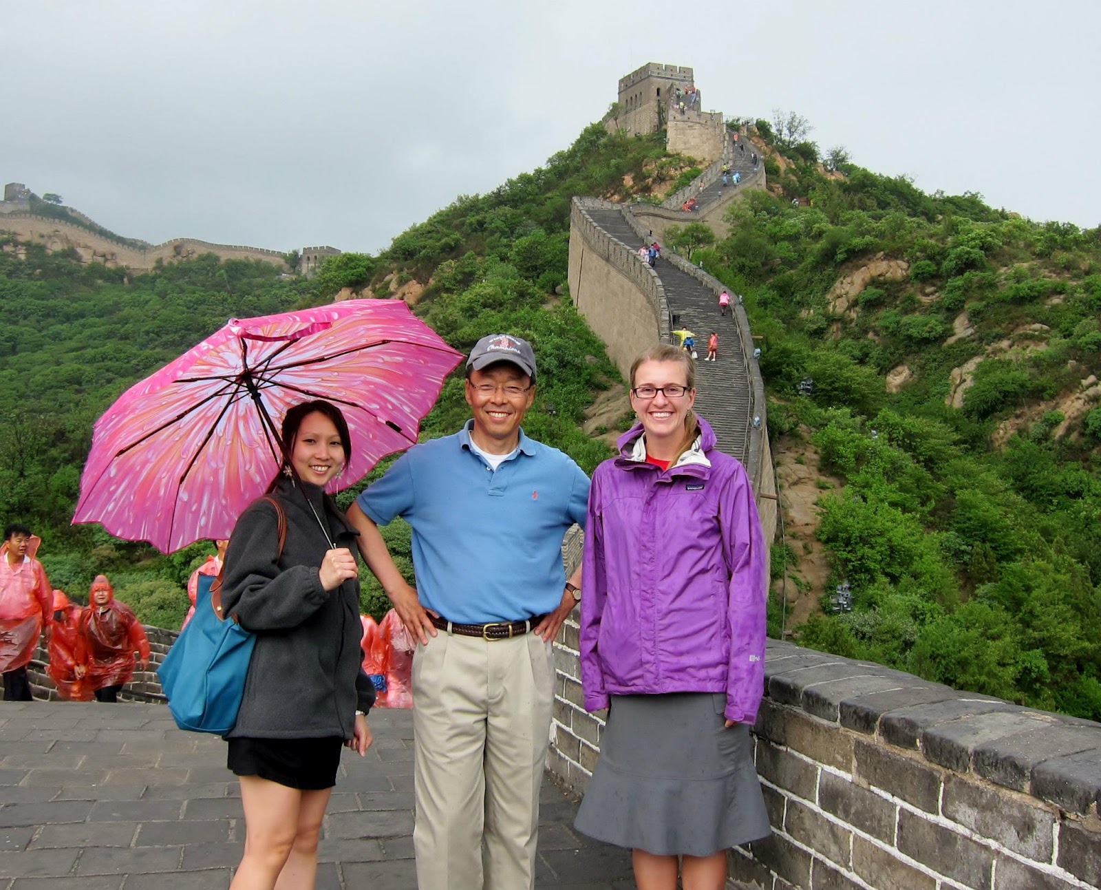 | Maggie Liu and Caroline Keely with Professor Kim at the Great Wall in Badaling China |