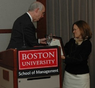 Around 6:45pm a hush fell over a room of 120 students, alumni, and faculty as they listened to Kristen McCormack speak. Everyone had gathered to honor Kristen McCormack’s 10-year tenure as the Faculty Director of the Public and Nonprofit Management Program (PNP). Gerry Leader described recruiting Kristen 10 years ago because the Boston University faculty desired to revitalize the PNP program. Looking around the room it was clear to see that Kristen had far exceeded their expectations. Kristen used her entrepreneurial spirit, devotion to experiential learning, connections throughout Boston and her love for people to help the PNP program thrive.