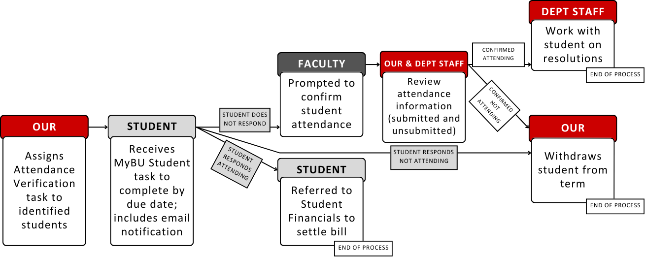 The Attendance Verification process confirms whether a student is currently “in attendance” at the University. This resource focuses on the overall workflow process and is for impacted students, faculty, and staff.