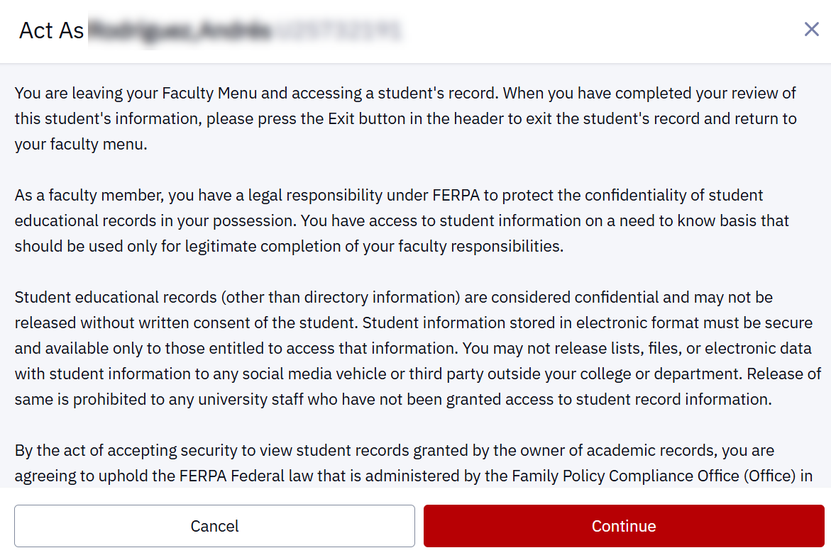 - Review the FERPA disclaimer and select Continue.