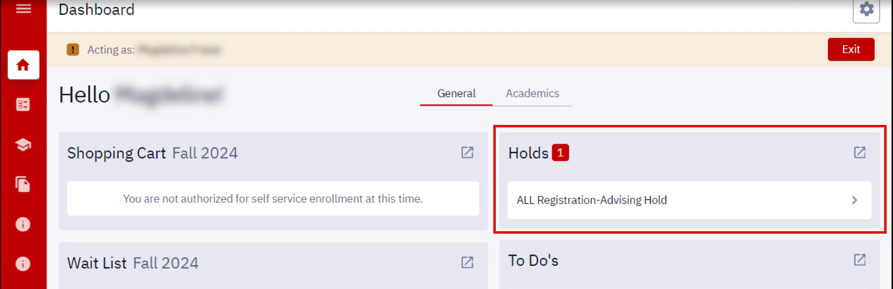 | Suspension Hold – Academic | RSP, with Reason Code ACAD | Students who have received academic suspension | Academic Suspension: please contact your Advisor for further information. | Department or School personnel |