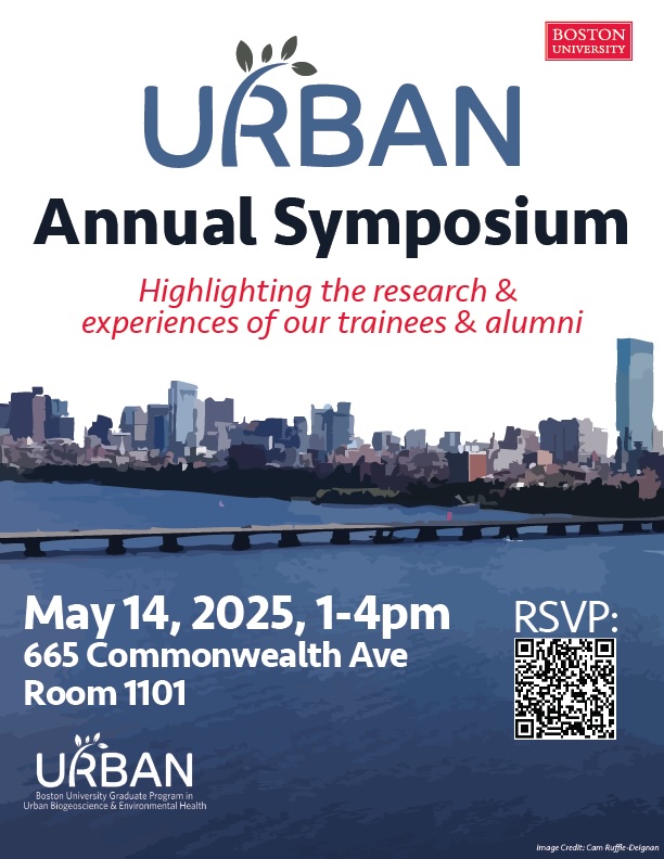Please join us on Wednesday, May 14, 2025, for the BU URBAN Annual Symposium. The event will be from 1:00 to 4:00pm, in room CDS 1101 at 665 Commonwealth Ave.