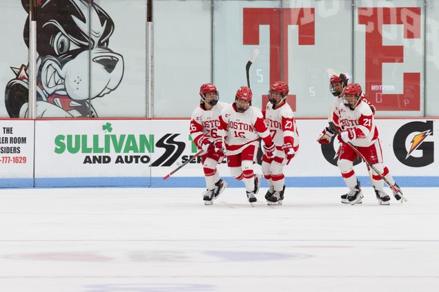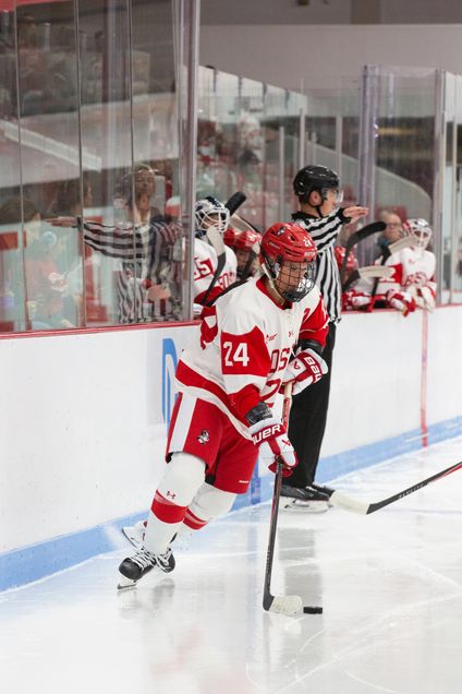 The Terriers huddle up at the net before the game.Senior forward Lilli Welcke (26), senior forward Luisa Welcke (16), sophomore defender Kiera Healey (27), senior forward Riley Walsh (21), and senior defender Maeve Kelly (24) skate toward the bench after Lilli Welcke’s goal in the first period.The Terrier bench celebrates a goal.Senior forward Clara Yuhn (19) controls the puck in the offensive zone.Sophomore forward Lola Reid (8) celebrate her goal in the second period.Sophomore defender Kate Meinert (6) reacts to sophomore forward Lola Reid’s (8) goal.Graduate goaltender Michelle Pasiechnyk (1) gloves a shot from Concordia.The Terriers skate into the offensive zone.Senior defender Maeve Kelly (24) controls the puck.The Terriers celebrate senior forward Clara Yuhn’s (19) goal in the third period.Senior forward Lilli Welcke (26) enters the offensive zone with the puck.The Terriers huddle at the bench before the start of overtime.Freshman goaltender Jackie Wright (35) stops a shot from a Concordia player during the shootout.Senior forward Clara Yuhn (19) and junior goaltender Mari Pietersen (92) at the blue line during the starting lineup announcement.