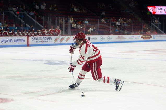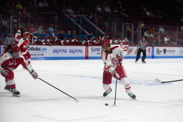 Sophomore defenseman Cole Hutson (44) shoots the puck.Freshman forward Jack Murtagh (19) controls a rolling puck.Sophomore forward Brandon Svoboda (8) looks for an open teammate.Junior goaltender Max Lacroix (33) stops on the blue line during starting lineup announcements.Senior forward Owen McLaughlin (23) and sophomore forward Cole Eiserman (34) react to junior defenseman Gavin McCarthy’s (2) goal.Freshman forward Ben Merrill (25) reaches for the puck.Freshman forward Jack Murtagh (19) shoots the puck.Freshman forward Ryder Ritchie (21) ties his skates during a stoppage.Sophomore forwards Kamil Bednarik (38) and Brandon Svoboda (8) strategize a faceoff.Freshman defender Kyle Kim (27) skates around an RPI player.Sophomore defender Cole Hutson (44) fights for possession of the puck.Freshman forward Jonathon Morello (10) skates back to the bench after scoring.Sophomore defenseman Sascha Boumedienne (78) shoots the puck.Sophomore defenseman Cole Hutson (44) protects the puck.Freshman forward Ryder Ritchie (21) shoots the puck for an empty-net goal.