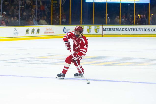 Outlasting a penalty-filled game and an attempt of a late comeback, the Boston University men’s hockey team earned its first sweep of the season with a 5-4 over the Merrimack Warriors. After a scoreless first period, junior defenseman Gavin McCarthy wristed the puck into the back of the net 36 seconds into the second period. Then, sophomore forward Sacha Boisvert found classmate, sophomore defenseman Cole Hutson for a one-timer in the right circle, and linemate, freshman forward Ryder Ritchie for xyz, in the fourth and 14th minute of the second period. Holding a commanding 3-0 lead, the Terriers took a slew of penalties, and the Warriors made it a one-goal game by scoring twice on the man-advantage. Killing off all penalties that overlapped into the third period, senior forward Owen McLaughlin scored in the 16th minute of the final frame, and junior forward Jack Harvey tacked on an empty-netter two minutes later. Merrimack clawed back two more goals, but BU held on for all three points.