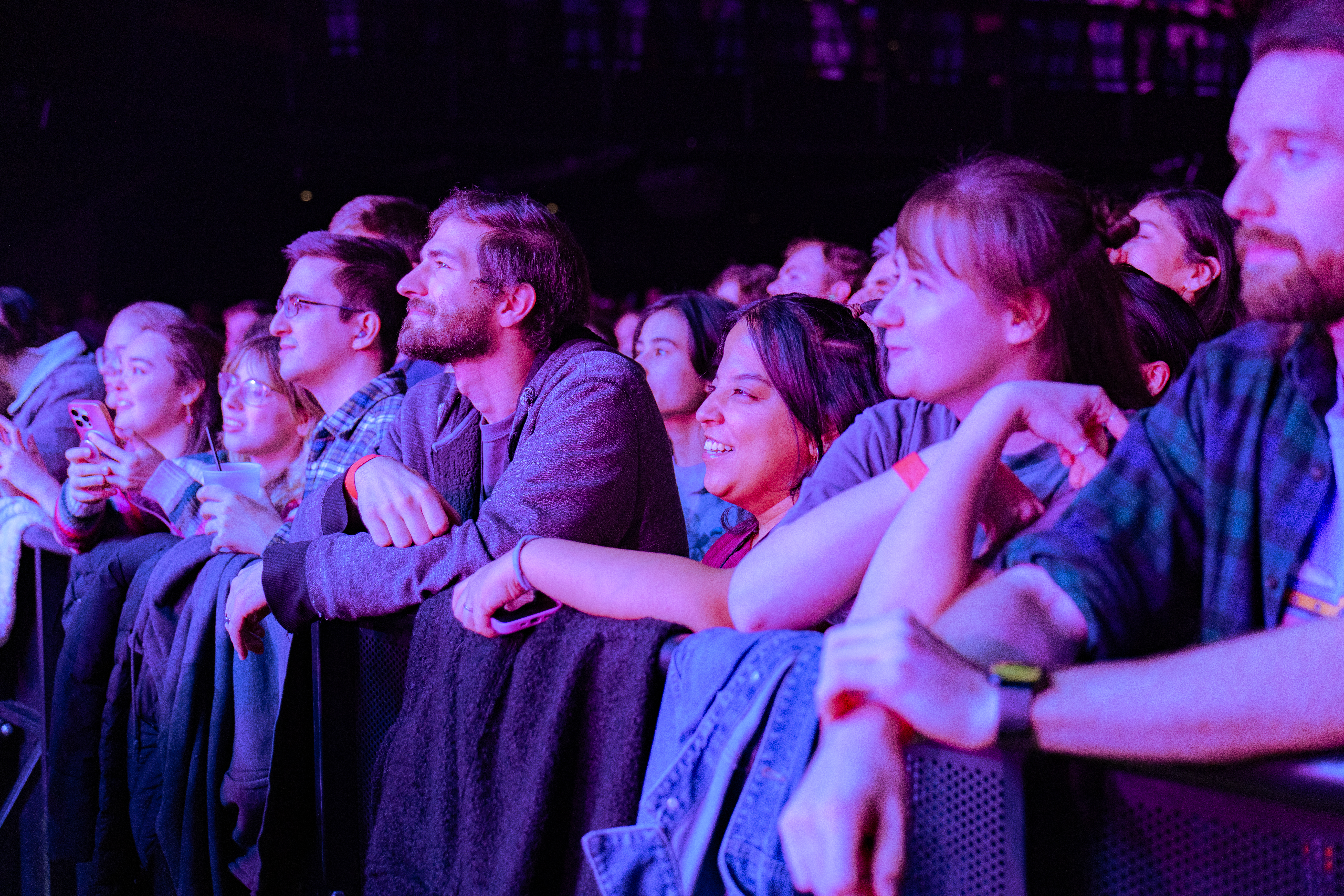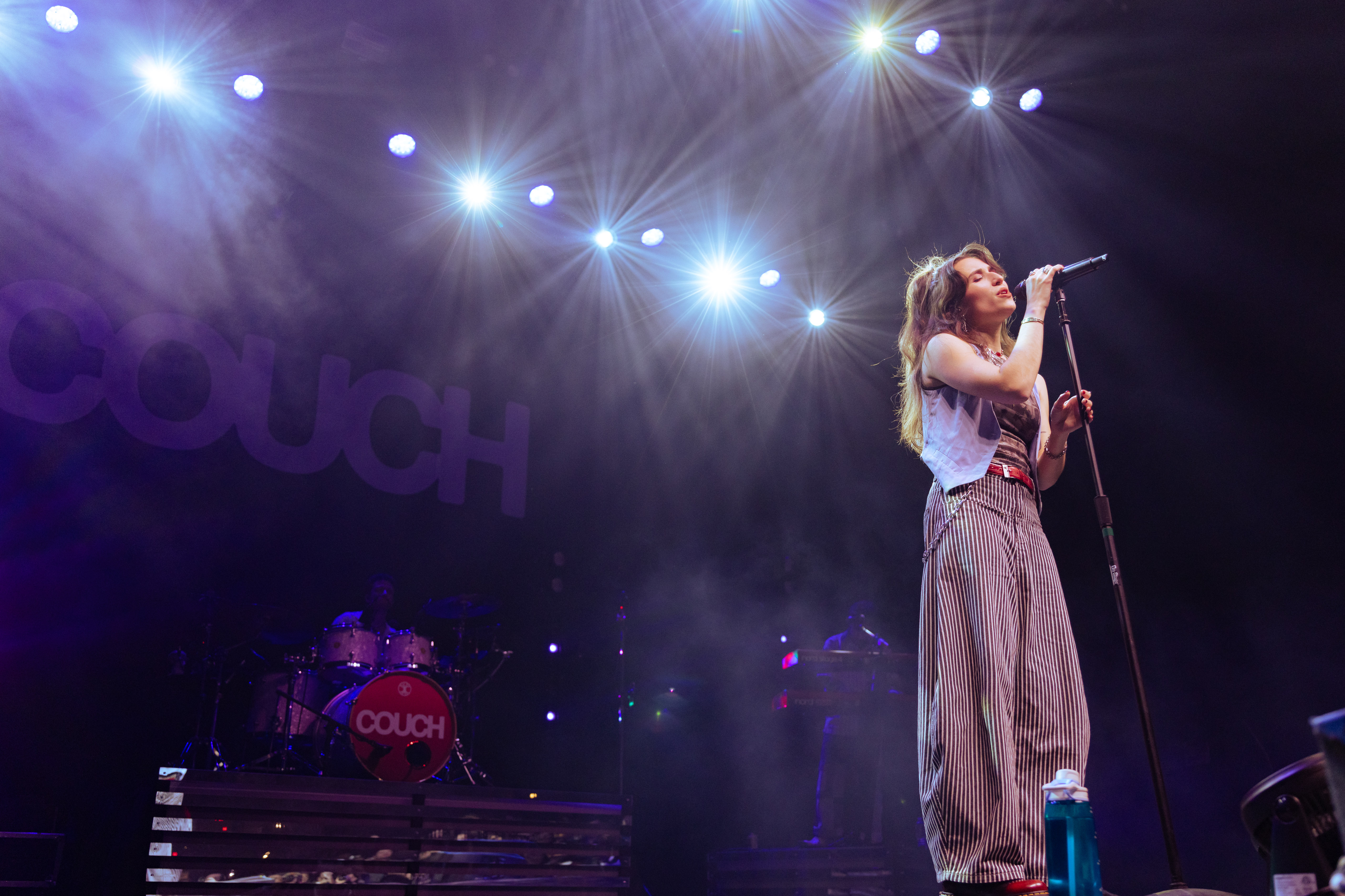 When they played the intro to “Poems,” I admit, I scrambled to delete apps off my phone just to be able to record the full song. Luckily, I had a bit of time as Siegel introduced new fans to the ‘Couch Family Photos’ segment of the show, where cameras are thrown out to the audience to take pictures with friends, old and new. The bit acts as both a pun on their name and a testament to their independent roots that create intimate shows and found families. Fans were encouraged to buy their photos at the end of the night, as all the proceeds were donated to Rosie’s Place, a women’s shelter in Boston that provides day and overnight shelter while offering resources for education and legal services. This gesture puts into action many of the themes in their songs, like resilience, finding oneself, and finding “gratitude in the mundane,” as Siegel put it in the intro to “Window.”